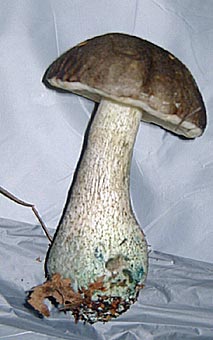 | | English Name: Brown Birch Bolete | | Norwegian Name: Svart skrub | | Latin Name: Leccinum variícolor | | This is a variety of the Birch Bolete which is distinguished by it's darker hat, and by a turquoise colored bruising that it gets, especially around the base. | |