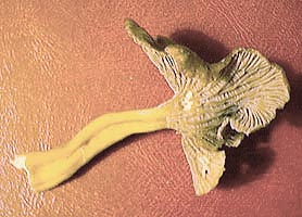 | | English Name: Winter Chantarelle/Trumpet Chantarelle | | Norwegian Name: Trakt kantherelle | | Latin Name: Cantharellus infundibuliformis Cantharellus tubaeformis | | One of the easiest to find in one way..in another the hardest. They blend in with fall leaves very well and grows often amongst the low lying Norwegian wild blueberry bushes. However, once you find an area where they grow, you may easily find thousands of theys little gems! they are thinner and not as bright as regular chantarells, but they smell and taste very similar. They are best picked by pinching them off at the lower stem which is easy as they are hollow. When you get them home, you can either use them after cleaning or dry them easily by stringing them and hanging them in a warm place to dry. Don't put them in the oven! They get soggy rather than dry! When you rehydrate these, use the water as a basis for sauces and soups. | |